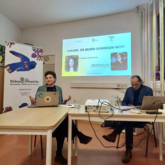Am 11. November fand im Ridna Domivka eine Vorlesung von Bohdan Segin mit dem Titel „UKRAINE. DIE MUSEN SCHWEIGT NICHT” statt. Das Projekt wurde im März 2022 von der Lemberger Nationalphilharmonie ins Leben gerufen, um zu zeigen, dass Kunst und Kultur auch in Kriegszeiten nicht schweigen dürfen.